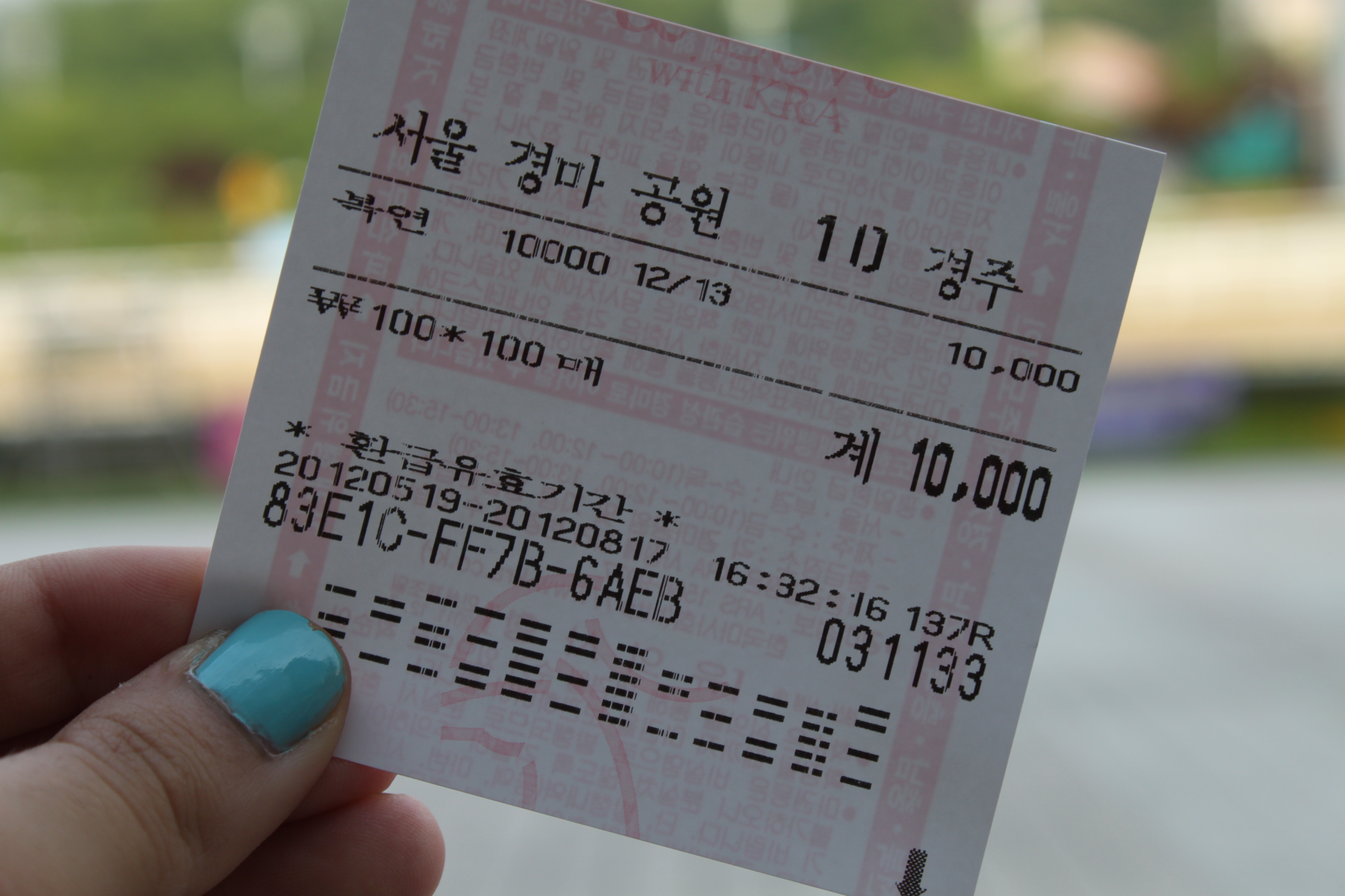 Okay, maybe I actually found a quick way to become a degenerate gambler (especially for someone with an addictive personality and insatiable desire to win things, like myself), but I did manage to win 120,000 won (about $100) this weekend during my first visit to Seoul Racecourse. All of which was quickly dumped into my travel savings tin when I got home and got me thinking about my next trip to the track. And why I hadn’t gone sooner.