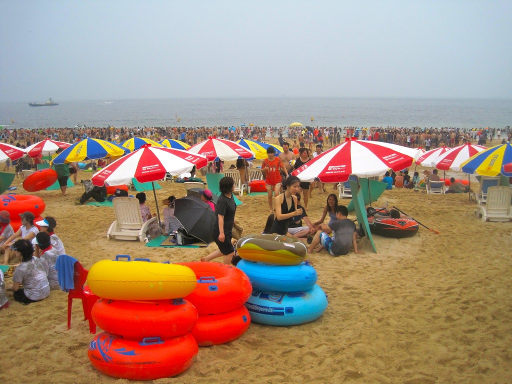 Touting special benefits for the skin and hair, mud from the nearby Boryeong mud flats is carted to Daecheon Beach for two weeks every July. This small, quiet beachfront town, located about 2.5 hours south of Seoul by train, becomes a hubbub of revelers during this time. By the time we arrived on Friday night, people were spilling out of pensions, grilling up thick slabs of samgyeopsal on outdoor grills, and cheers-ing shot after shot of soju.