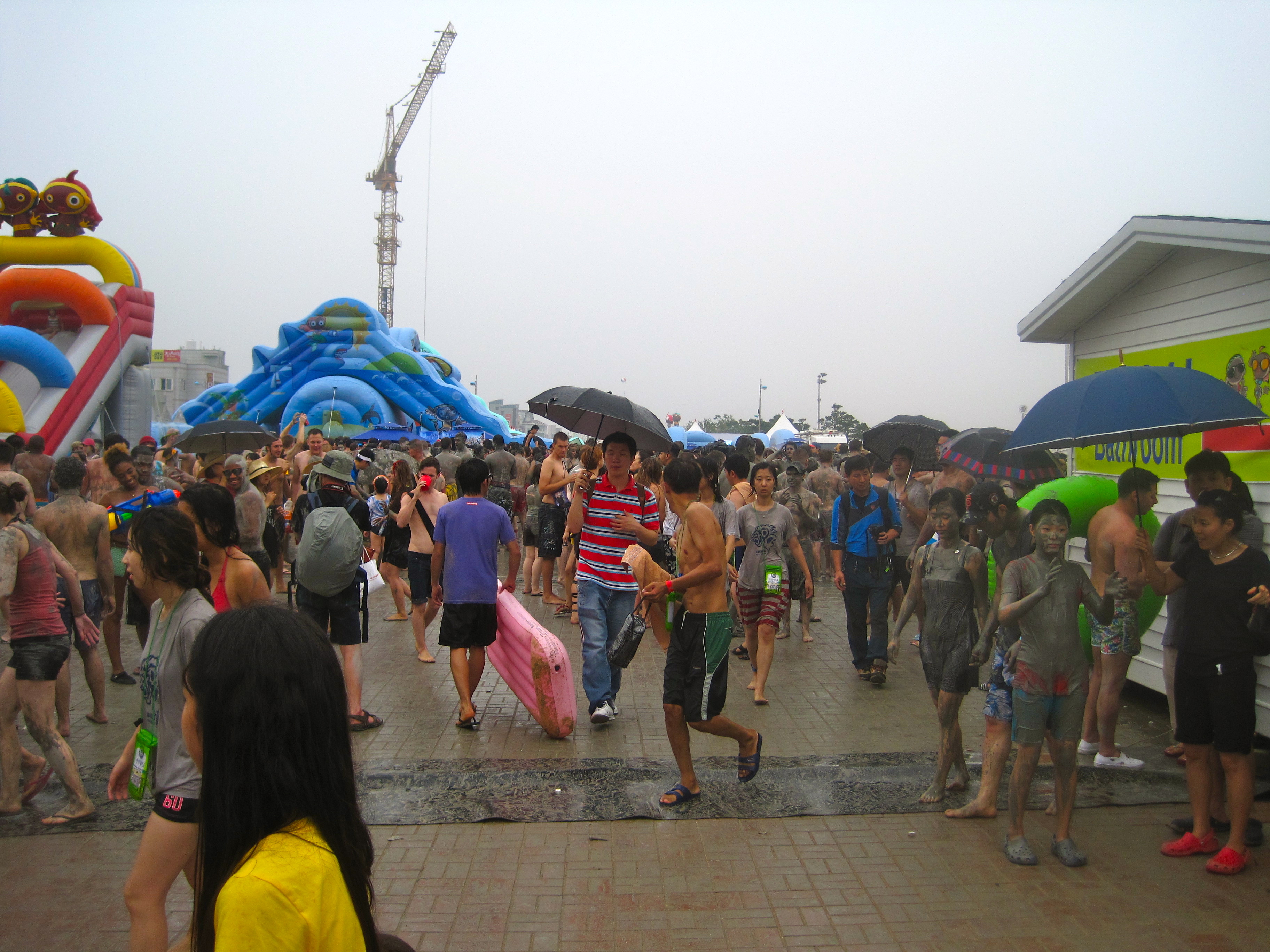 This night was no different. About thirty people, all foreign, decided to run around the beach completely naked. The police showed up. A crowd gathered. While it was pretty hilarious I couldn’t help but think, this is why foreigners have such a bad name in Korea. Eventually the skinny dippers were forced to put their clothes back on, the rain picked up, and I put an end to my Mud Fest experience.