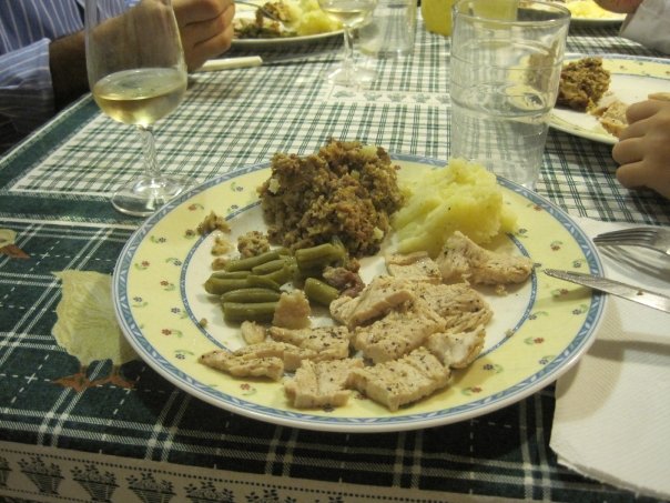 Don’t want to go out? Host your own party. Gather up some friends, American or not, and recreate your holiday favorites. When I was an au pair in Rome, I suggested to my host family that I cook them an American Thanksgiving dinner. They immediately said yes, and were excited to have the opportunity to experience an American holiday. In lieu of a whole turkey, something I couldn’t afford on my au pair salary, I pan fried turkey breasts. For sides, I made my dad’s stuffing recipe, green beans with pancetta, and mashed potatoes. I even baked a pumpkin pie for dessert. My host parents brought a bottle of white wine, and we enjoyed a nice meal and cultural exchange.