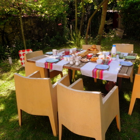 Other meals in the garden troubled me, but for different reasons. At our Saturday morning breakfasts I painfully resisted the urge to wolf down the feast in front of me: still-warm baguettes laid directly on the table, soft-boiled eggs with gooey orange yolks, a wicker bread basket filled with flaky, buttery croissants and pain au chocolate with its creamy dark chocolate center. I tried to eat daintily but couldn’t help myself from indulging; this spread certainly beat my family’s Saturday morning breakfast of box pancakes drowning in Mrs. Butterworth’s.