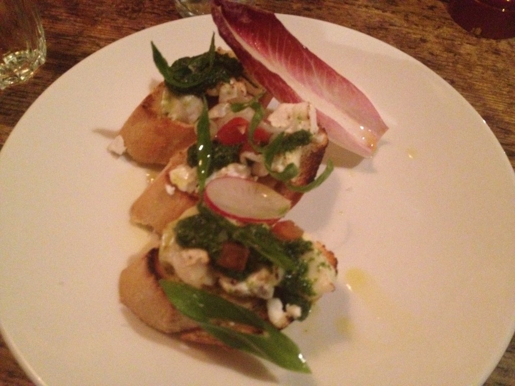 It was hard to decide what to order, so we decided to go with a variety of small plates to share. The bone marrow and saffron arancini were a little dry, but everything else was delicious. I particularly liked the dandelion and goats curd crostini and the crispy squid with black lime sauce.