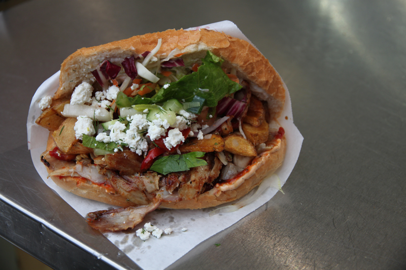 And somehow, this kebab managed to not just meet my expectations, but to surpass them. Here they go beyond the basic kebab. There’s the meat,  fresh salad, garlic and hot sauces, but there’s also roasted peppers and potatoes, a sprinkle of feta, and a squirt of lemon, which creates an even deeper combination of flavors and some nice variety in texture. This is the way fast food should be done.