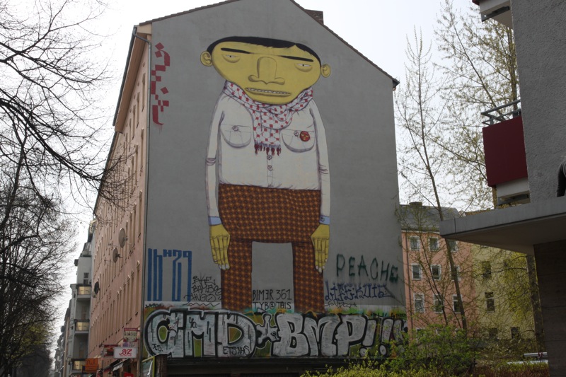 Kreuzberg is an area of Berlin located just south of the center. Once part of West Berlin, it used to be one of the poorest areas of the city. Today, though, it is one of the trendiest. Filled with young people, bars, and cafes, Kreuzberg is now considered cultural and cool. Like many hip neighborhoods around the world, Kreuzberg is also full of street art. I got off at the Schlesisches Tor U-Bahn stop for lunch and during a quick walk around the surrounding area after my burger, I found some interesting pieces.