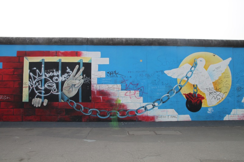 Today the wall is almost completely destroyed with only a few key parts still remaining. An 80 meter long piece stands at the Topography of Terror, the site of the former Gestapo headquarters, and the longest section, a 1.3 km stretch along Mühlenstrasse called the East Side Gallery, is covered with paintings from international artists representing hope, peace, and freedom.