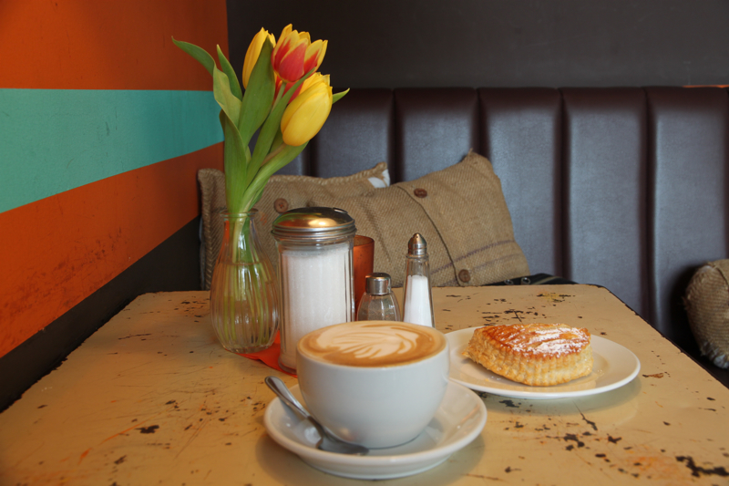Besides great coffee, the ambience is part of the appeal of Impala. There’s a minimalistic shabby chic thing going on- think wood, bright colors, and mismatched pillows. There is also a lot of outdoor seating which made for a lovely place to linger over a cappuccino and a book on a spring morning.
