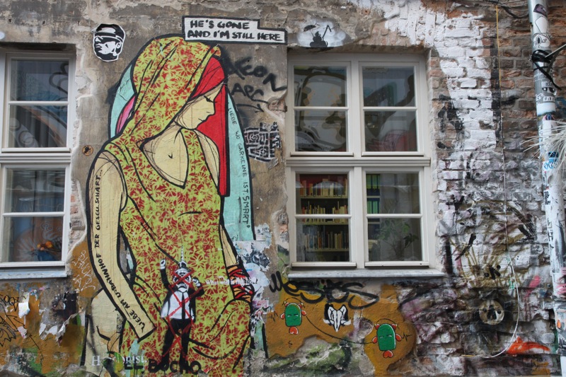 Though technically this alley off Rosenthaler Strasse is part of Mitte, it deserves a section of its own because it is that awesome. This alley next to the museum dedicated to a man who helped Jews escape deportation during World War II is a street art haven. The walls are covered with paint, stickers, and stencils done by different artists and is the biggest and best collection of street art in one place that I’ve seen anywhere in the world.