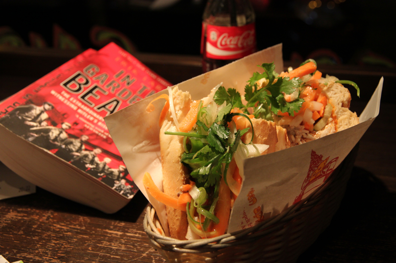 Not wanting to end my Vietnam food challenge after one restaurant, I decided to try Co Co Banh Mi Deli, a recommendation from Waegook Tom. In Vietnamese banh mi means bread, but more commonly refers to the sandwiches made on a baguette that are popular throughout the country. The banh mi sandwich is a fusion between Vietnamese and French ingredients with mayonnaise, pate, pickled vegetables, and fish sauce commonly found as toppings.