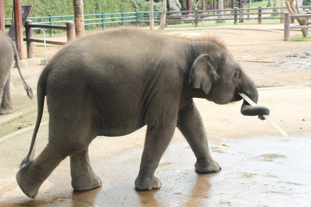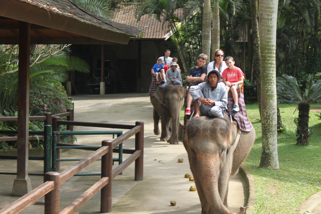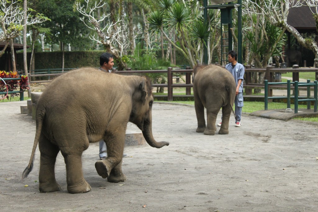 We were picked up from our guest house in the morning and after an almost hour drive along winding roads and through terraced rice fields, we arrived at the park. Newly built lodges and restaurants made to look like something you’d see on a safari, a museum, a gift shop, and an endless loop of commercials featuring the birth of some baby elephants at the park and advertising special events reminded me more of a theme park than an animal conservatory.