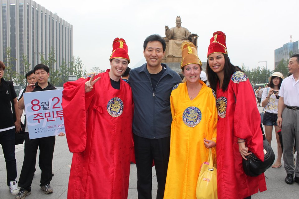 Meeting the former mayor of Seoul on Korean Independence Day.