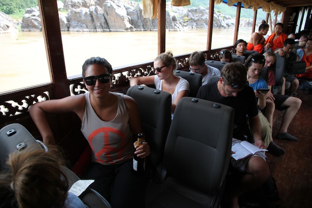 By the time we crossed the border and got everything situated, it was nearly noon when we set off down the river. Everyone was in a bit of a celebratory mood at this point, beers were being purchased from the stand near the back of the boat and someone pulled a bottle of whiskey out of their backpack. The afternoon was spent casually drinking and swapping travel stories. My favorite companion was a man in his 70s returning to Southeast Asia to revisit all the places he’d seen in the 1960s and 1970s. His stories about the area back then, and the differences today, were enthralling.