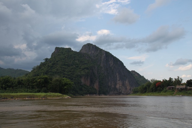 The second day was much more low key. I spent most of the time reading or listening to music. As we got closer to Luang Prabang the scenery began to change with palm trees and dramatic rock formations rising out of the banks.