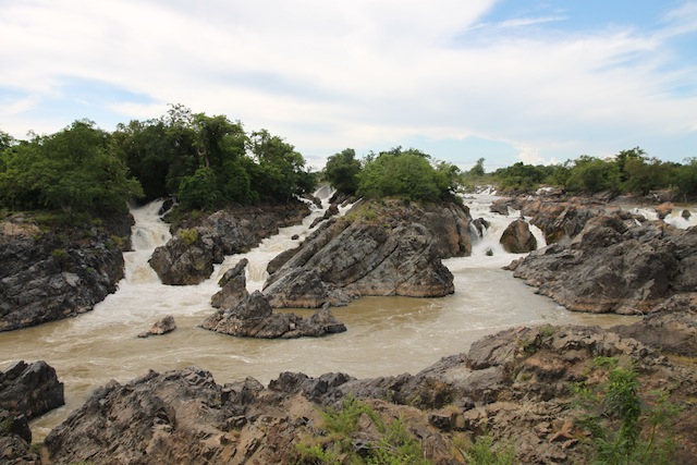 We rented bikes and cycled from Don Det to Don Khon, passing by small villages and rice paddies. On Don Khon we visited Li Phi waterfall. Though not impressive in its height, the volume and power of the water flowing over the large boulders made it different than of the other falls we’d seen.
