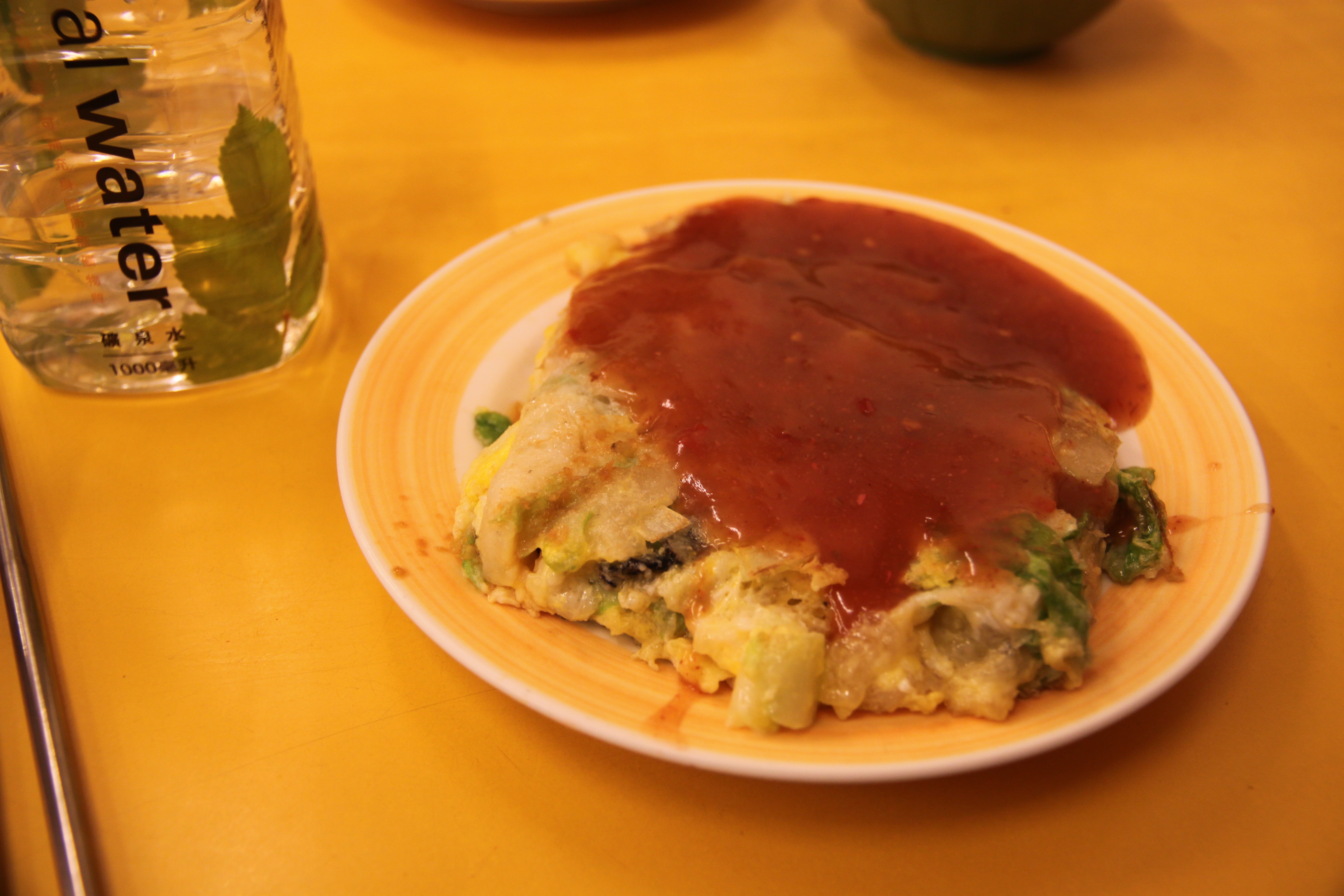 The last dish I tried at Raohe Street Night Market was actually not Taiwanese or Chinese, but Japanese. Okonomiyaki was one of my favorite dishes in Tokyo and the cart selling these Japanese pancakes had a long line with cooks who made cooking a show.