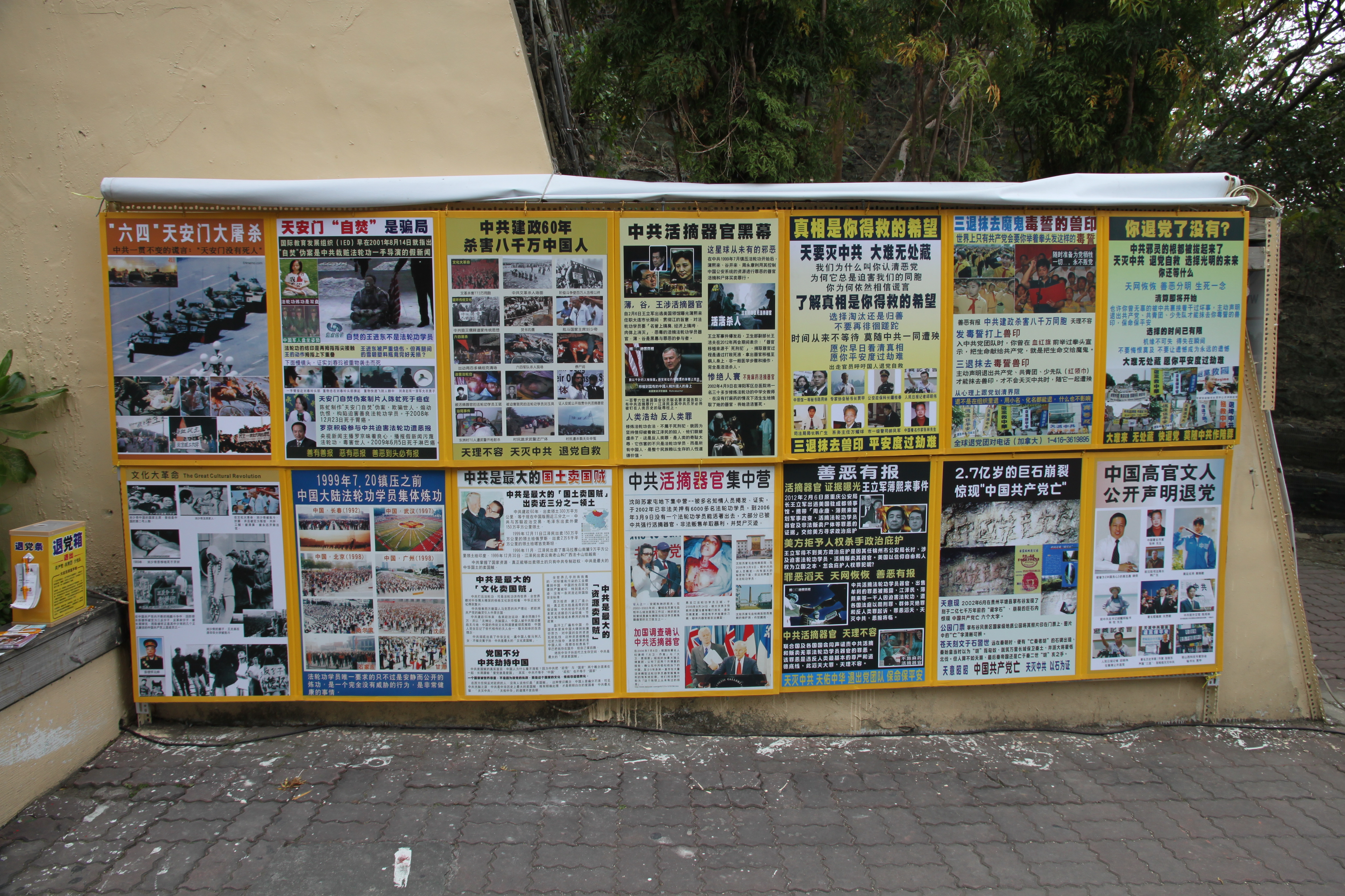 As I walked back down the stairs I noticed a lot of posters hanging on the walls near the bottom. It turns out that the former consulate is now a popular area for protests against the Beijing government and in favor of Falun Gong, which is somewhat amusing considering that most of the tourists visiting the site are from mainland China.