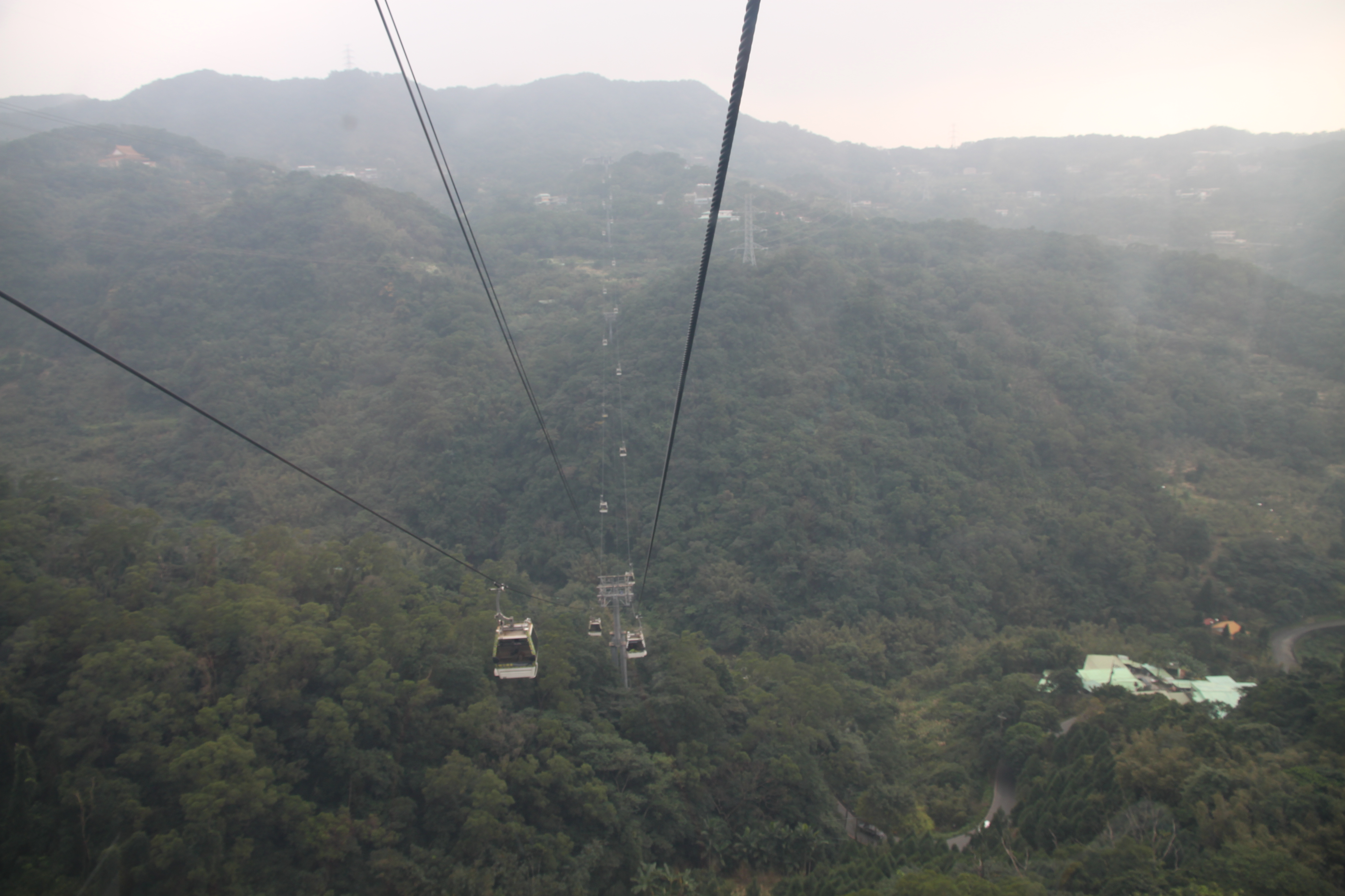 The nearly 30 minute, 4.7 kilometer ride costs NT$50 each way. There are two types of gondolas, glass bottomed and regular, and both are the same price. The wait, though, for the glass bottomed car was significantly longer and since I felt no real need to see how far I was dangling in the air, I chose the regular one. I spent the ride reading up on the area and snapping photos of a hazy Taipei through the dirty windows.