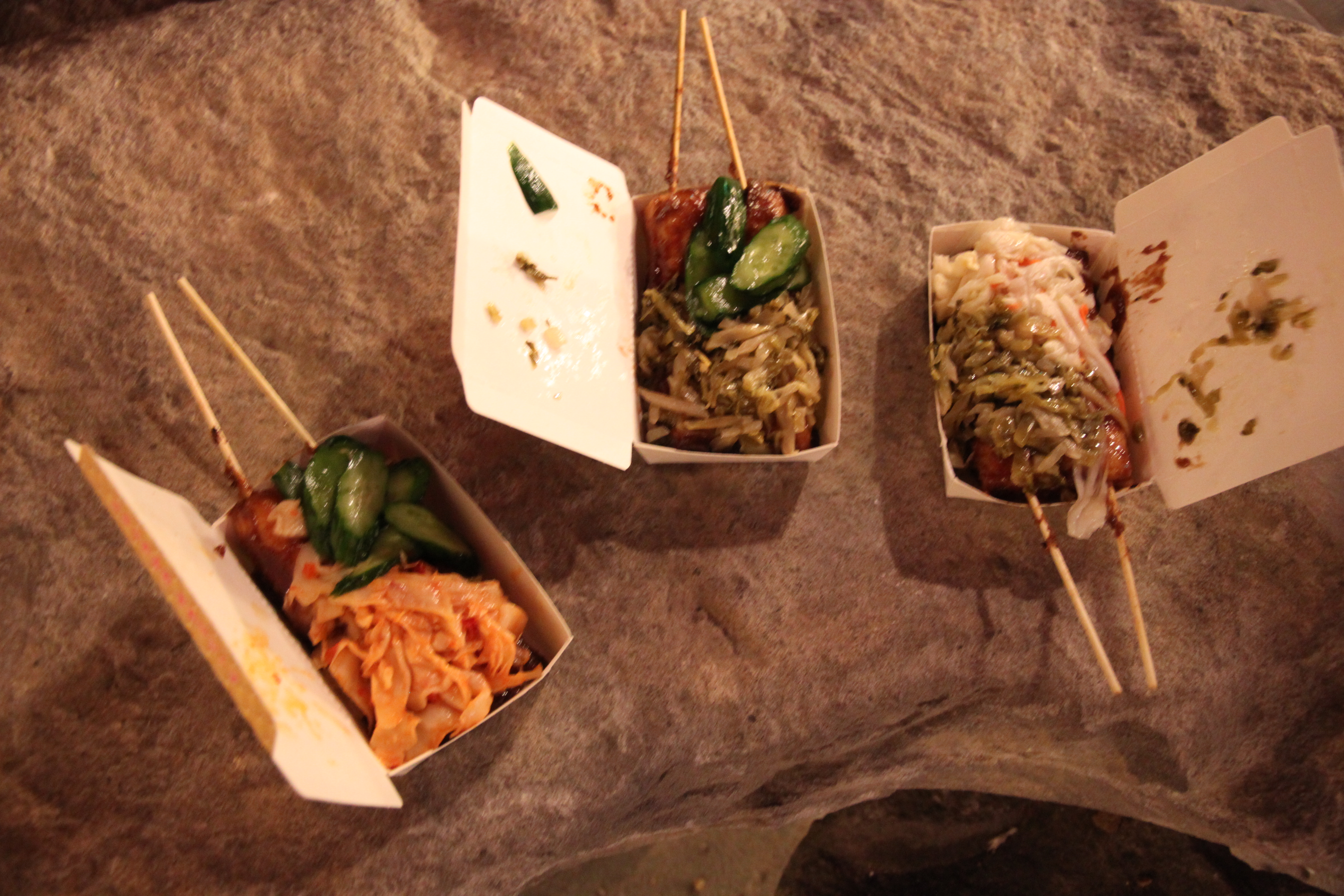 After that I decided to try something sweet and completely new- fried milk. The vendor took what looked like gelatinous ball of sweet milk custard and dropped it into hot oil. The golden brown balls popped when bit into, releasing a creamy, sweet custard. I’m not a sweet tooth and this was one of my favorites.
