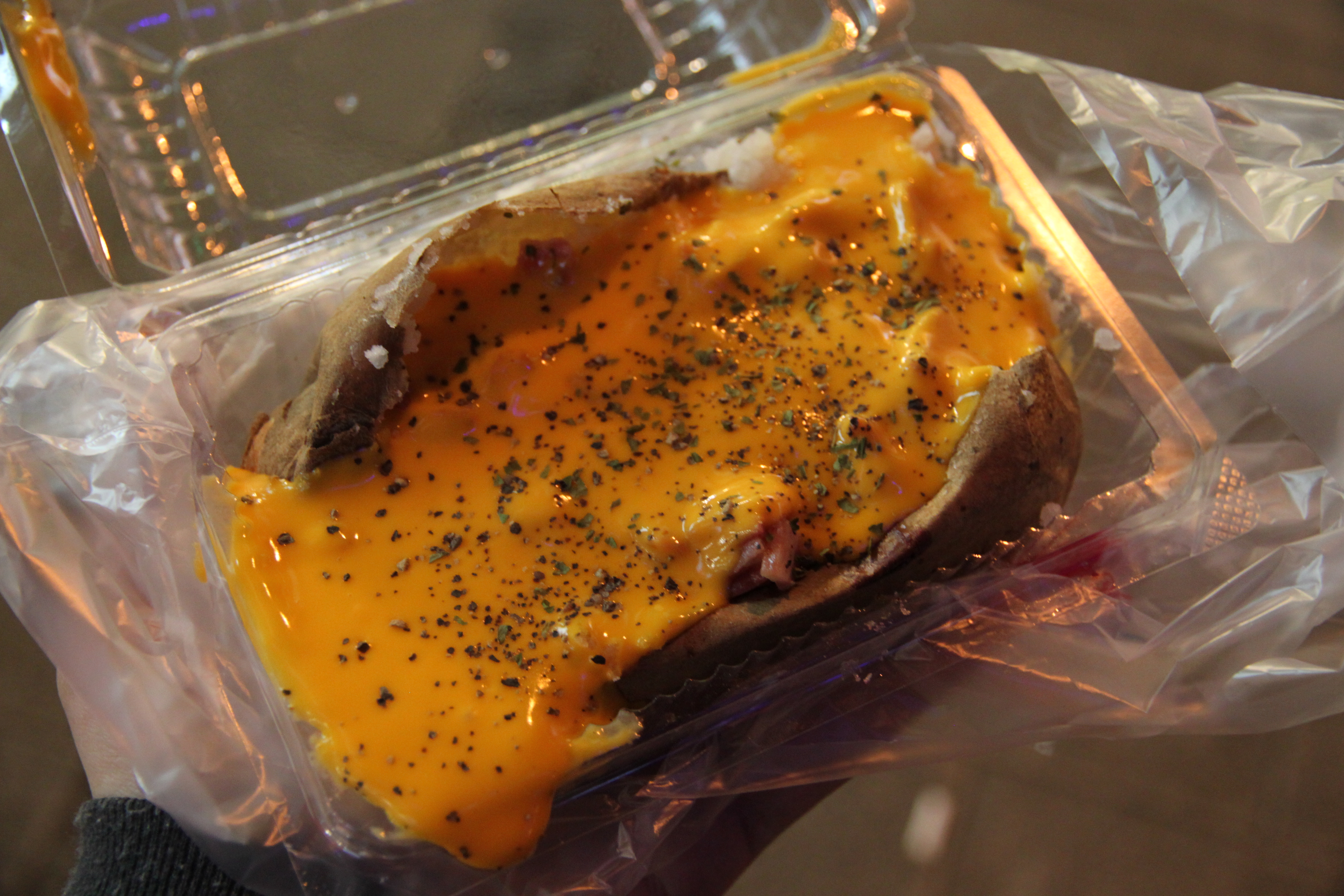 Raohe Street Night Market is one of the most famous in Taipei and was conveniently located near the hostel I stayed at after my return to the city. I checked out this market along with two girls I met at my hostel after a long day of sightseeing. Before I even passed through the entrance I saw a stand that caught my eye, a stand selling baked potatoes smothered in fake, orange cheese. If I have one weakness in life it is creamy, neon nacho cheese.