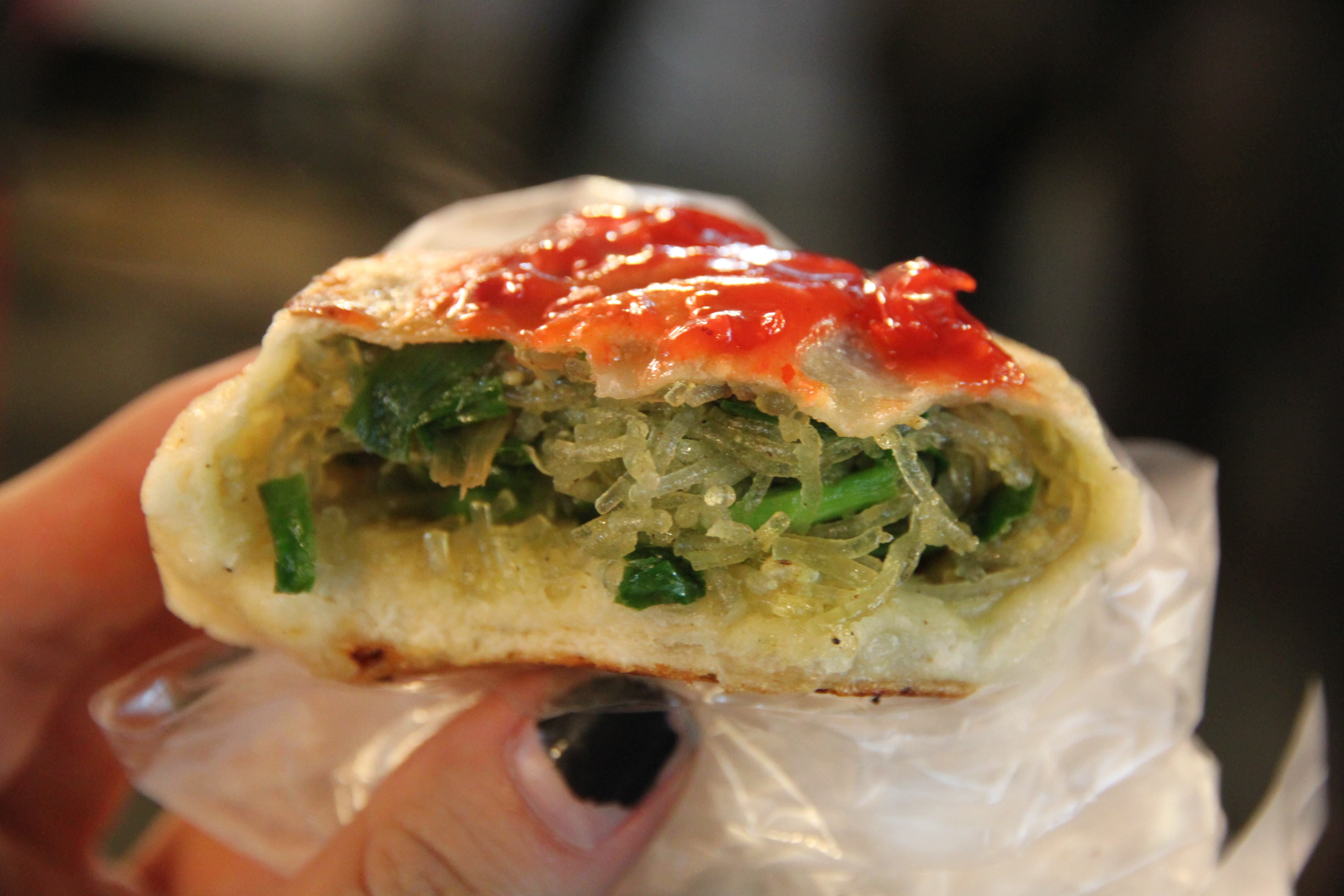 I can never pass up a good dumpling when I saw a stand selling large dumplings filled with glass noodles and green onion I was first in line. I slathered on a good amount of hot sauce and devoured it while walking to find my next snack.