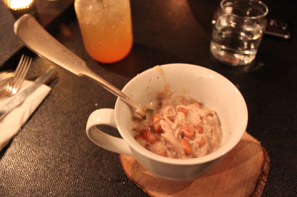 The second course began with what could possibly be the best nonalcoholic drink I’ve ever tasted. When I read the menu and saw a “Christmas tea soda” listed, I almost immediately wrote it off as something I wouldn’t like. But the combination of frankincense, myrrh, and spices was liquid perfection. It wasn’t too sweet. There wasn’t too much carbonation. It was Christmas in a mason jar.