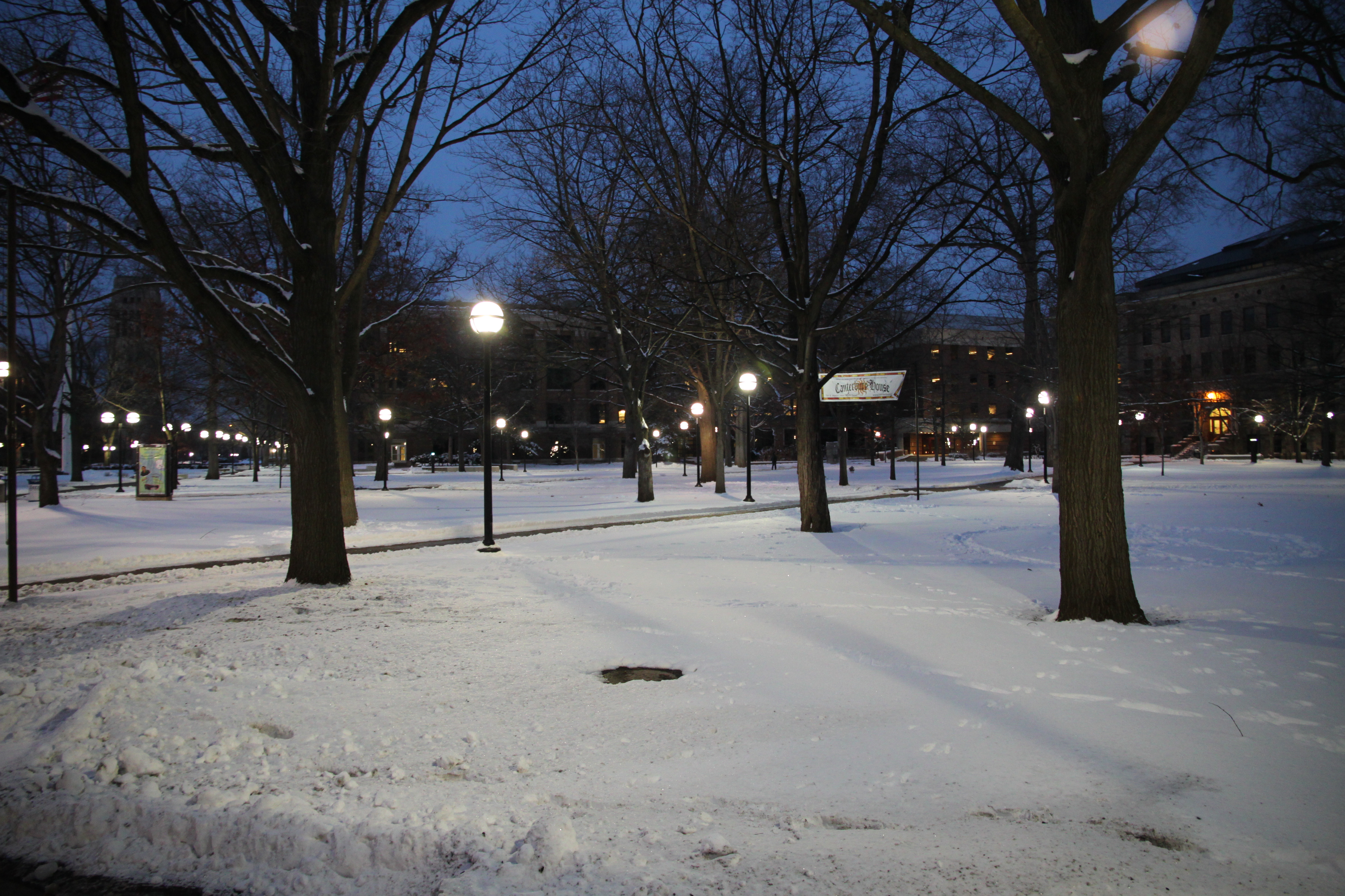 A little disappointed, we walked across the Diag where I stopped every ten feet to take a photo and talk about stupid things I’d done in college. More than that though, I admired the beauty of campus that I’d often overlooked when I was rushing to class or coming home from the bar. The sun was almost set, the ground was lightly covered with snow, and there weren’t many people around. It was another point for greatest little city.