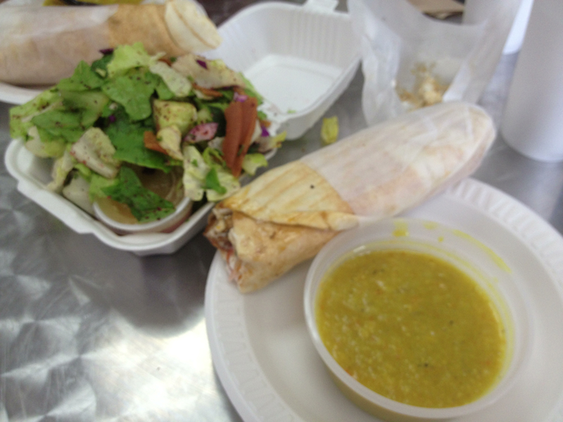 Arrive, only 15 minutes late, to meet your friend at Smorgasburg, a food market in Brooklyn. Battle the crowds to eat everything in sight. Cold spicy Asian noodles. Indian tacos. Banh cuon. Wish you were hungrier.