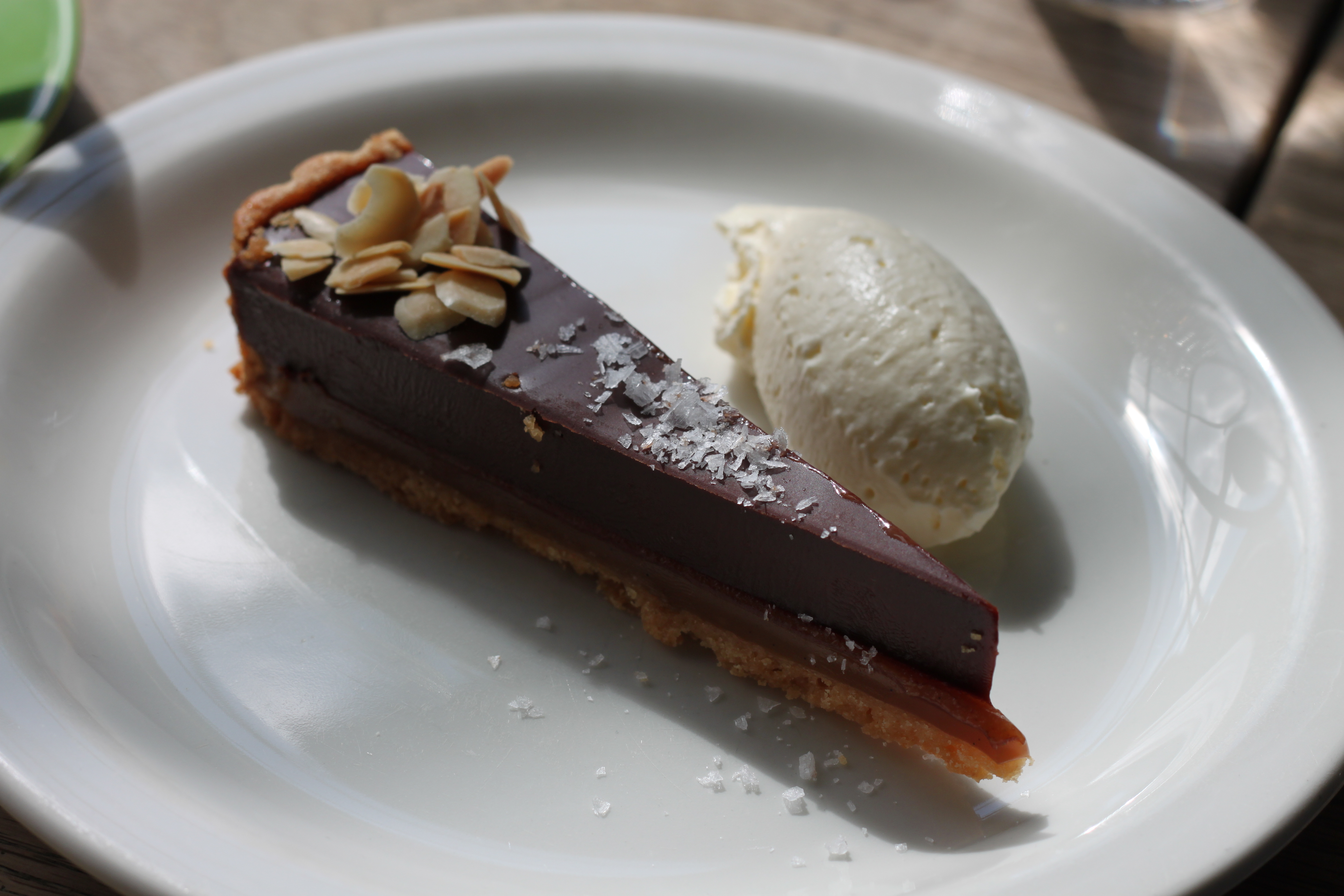 And finally we made it to the last stop. Not finally because I was ready for it to be over, finally because I was so full I wasn’t sure I could fit another bite. Until I saw what we were being served, that is. Pizza East is popular with newest immigrant to the East End- the hipster. We were each given a cup of tea and a sliver of a salted caramel and chocolate tart. This was another dish that made me reconsider my choice of savory over sweet – I devoured the entire thing.