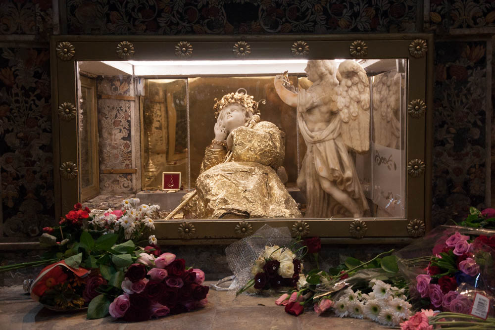 The entrance to sanctuary looks like a church, but it’s actually a cave inside the mountain. There are a few pews, a statue of Santa Rosalia, and the place where her bones are kept and offers are made. As someone who is decidedly not religious, I find acts of devotion extremely interesting and was surprised to see many locals inside the sanctuary offering their prayers to this patron saint. I almost felt as if I was intruding as there were so few tourists inside.