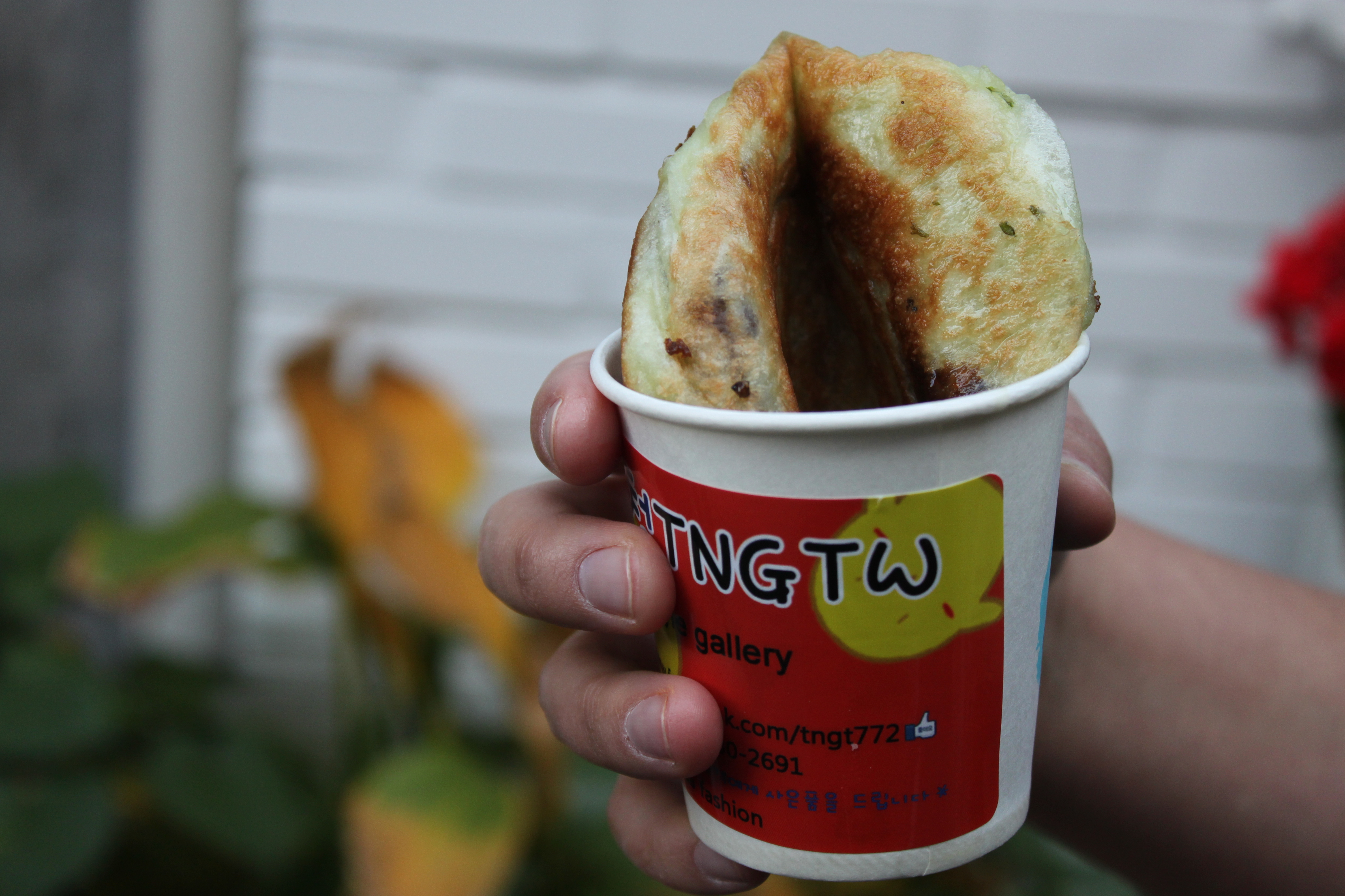 While waiting for the hotteok to cool, Tara and I took a walk along the main street, admiring the galleries, expensive boutiques, coffee houses that line the road. Once finished, we jumped in line for our next street food sampling.